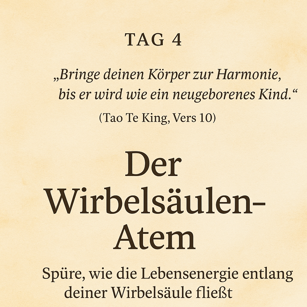 An den vergangenen Tagen haben wir die Kraft des Atems als Anker und die Wirbelsäule als zentralen Energiekanal entdeckt. Heute verbinden wir diese Konzepte zu einer der grundlegendsten und kraftvollsten taoistischen Übungen: dem Kleinen Energiekreislauf oder Mikrokosmischen Orbit. Diese Praxis lehrt dich, die Lebensenergie, Qi, durch eine festgelegte Bahn in deinem Körper zu leiten und eine innere Quelle der Stille zu erschließen.